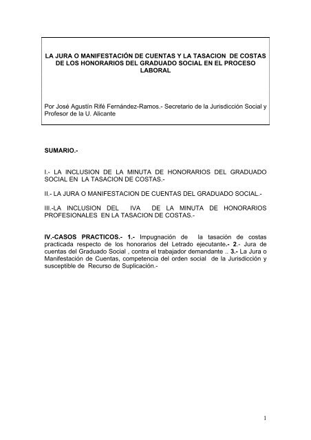 La Jura O Manifestacion De Cuentas Y La Tasacion De Costas De Los Honorarios Del Graduado Social En El Proceso Laboral Pdf Descargar Libre