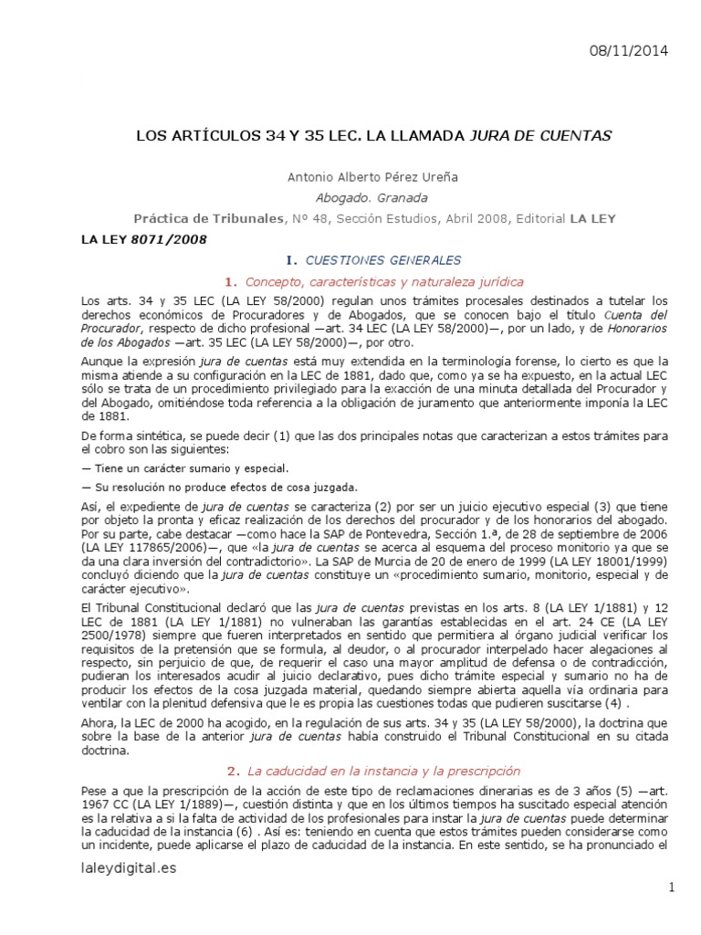 Los Articulos 34 Y 35 Lec La Llamada Jura De Cuentas Ley Procesal Caso De Ley
