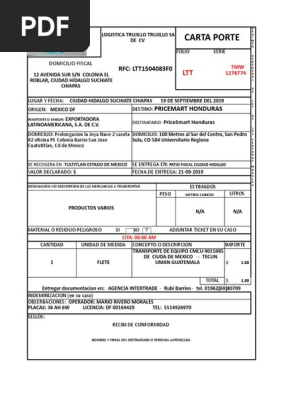 Carta Porte Ps Honduras Salario Minimo Servicio De Envio