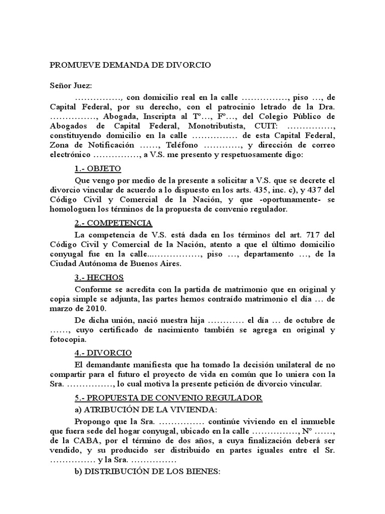 Puede descargar en word un fichero en blanco. Juzgado demanda de divorcio y a este efecto suscriben el presente convenio regulador de sus efectos que sometern a aprobacin judicial estando ambos debidamente asesorados. Vie Jun 10 2016 1122 pm.